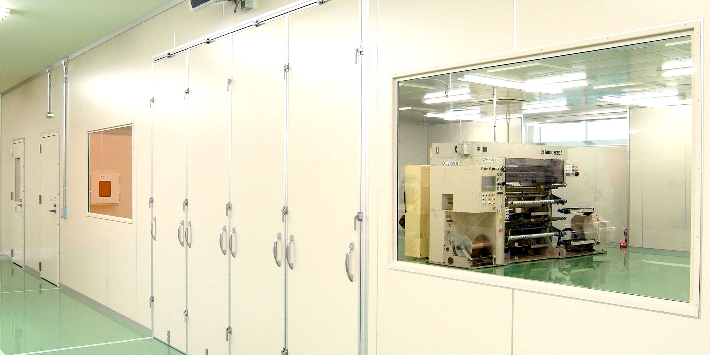 こうしたクリーン環境は、印刷工程の他、スリット、巻き返し検品の工程などにも導入されています。
