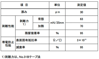 3.一般特性(軽剥離タイプ)